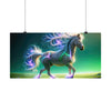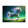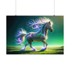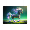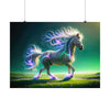 « Embrassez l'élégance lumineuse de « Phosphorescent Zenith », où la beauté surréaliste du monde naturel se confond avec l'éthéré. Cette affiche captivante présente un zèbre énigmatique, ses rayures brillant d'un spectre vibrant de néons, debout au milieu d'un champ serein baigné de la lueur du crépuscule. La crinière et la queue de la créature sont un spectacle fantastique de tourbillons irisés, ondulant avec la grâce des vagues de l'océan, illuminées comme par une énergie d'un autre monde. Cette bête majestueuse, une vision radieuse sur les verts tranquilles d'un paysage onirique, invite les spectateurs dans un royaume où fantaisie et réalité fusionnent. Parfait pour ceux qui cherchent à orner leur espace avec une touche de mystique et de magique, « Phosphorescent Zenith » est un phare d'imagination pour n'importe quelle pièce.
