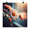 Entrez dans un royaume de beauté éthérée avec cette photo fascinante de marguerites délicatement placées devant une fenêtre éclaboussée de pluie. La lumière douce et maussade projette une lueur apaisante, intensifiant les tons de couleurs vibrantes des marguerites, créant une symphonie visuelle de teintes vives. Grâce à une précision incroyablement détaillée et hyperréaliste, chaque pétale semble exquis, avec sa texture veloutée et ses veines délicates présentées dans une clarté nette et à couper le souffle. C'est comme si vous pouviez sentir les douces gouttes de pluie sur votre peau et les reflets sur la fenêtre ajoutent une impression de profondeur, transformant la photo en un moment captivant figé dans le temps. Cette photo témoigne de l’élégance naturelle des marguerites et de l’interaction enchanteresse de la lumière, de la pluie et des détails botaniques qui peuvent véritablement transporter le spectateur dans un monde de merveilles florales.