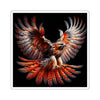 L'autocollant présente un oiseau majestueux en plein vol, ses ailes entièrement déployées dans une superbe démonstration de puissance et de grâce. Le plumage est une combinaison saisissante de teintes chaudes : oranges vives, rouges profonds et bruns subtils, chaque plume étant détaillée avec une complexité réaliste. Les yeux perçants de l'oiseau sont concentrés vers l'avant, dégageant un air de détermination farouche et de liberté sauvage. La toile de fond sombre accentue les couleurs vibrantes de l'oiseau, ce qui en fait un emblème captivant de beauté naturelle et d'esprit indompté.