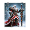 Entrez dans un monde où les mythes d’antan se mêlent à la magie de l’esprit des fêtes. Cette affiche à couper le souffle représente le Père Noël Souverain, un gardien légendaire de l'enchantement hivernal et de la joie de Noël. Contrairement à toutes les représentations du Père Noël que vous avez connues, celle-ci réinvente la figure emblématique comme un guerrier majestueux, vêtu d'une armure ornée d'étoiles qui brille sur fond d'un paysage mystique chargé de neige.