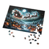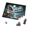 Embarquez pour une aventure de vacances magique avec « Le vol du Père Noël au-dessus du pays des merveilles hivernales », un puzzle de 1 000 pièces qui capture l'essence de l'enchantement de Noël. Cette scène richement détaillée représente le Père Noël et ses rennes planant gracieusement au-dessus d'un village enneigé, baigné par la lueur de la pleine lune et la lumière chatoyante des étoiles. Le traîneau orné, rempli de cadeaux et orné de motifs complexes, glisse dans la nuit, jetant un sort de joie et d'émerveillement sur le paysage hivernal en contrebas.