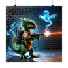 Embrassez l'extraordinaire avec notre affiche exclusive "Spectral Exterminator", mettant en scène le vaillant Zypher, un dragon à la fois mythique et magnifique. Avec son fidèle Proton Pack, ce protecteur de la taille d'une pinte se dresse sur fond de briques ombragées, un phare de courage dans la danse mystique des apparitions fantomatiques. L'image capture un moment de triomphe, alors qu'un spectre bleu, fabriqué à partir de lumière éthérée, recule face à la position résolue et à la merveille technologique de Zypher.