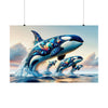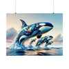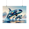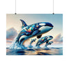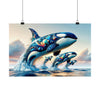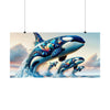 Le ballet aérien des orques arcadiennes" est une représentation majestueuse des géants les plus gracieux de l'océan, les orques, engagés dans une danse enchanteresse au-dessus des vagues. Cette image époustouflante capture l'essence de la liberté et la beauté naturelle de la vie marine. Les orques, ornés de motifs complexes de bleus vibrants, de sarcelles et de tourbillons de blanc, jaillissent de la surface de l'eau, créant un spectacle sur fond serein d'un ciel doucement éclairé avec des murmures de nuages. L'eau, imitant les teintes des orques, éclate autour d'elles. , soulignant leur mouvement puissant. Cette pièce est un hommage à l'esprit sauvage des orques, transformant un moment de leur voyage aquatique en un spectacle éthéré. C'est un poème visuel, une invitation à méditer sur l'harmonie de ces créatures avec la mer rythmée, faisant c'est une affiche idéale pour ceux qui apprécient la faune, l'art marin et la danse des performances décomplexées de la nature.