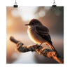 Le chef-d'œuvre de la nature est mis en valeur sur cette photo, mettant en vedette une charmante Phoebe orientale au milieu de la sérénité d'un paysage matinal. Le bokeh doux et crémeux en arrière-plan ajoute une qualité onirique à la scène, tandis que les détails nets des plumes de l'oiseau créent un niveau de réalisme étonnant. Les couleurs vibrantes donnent vie à l’image, évoquant un sentiment d’admiration et d’appréciation pour la beauté de la faune et de son environnement.