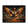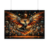 Imprimée sur du papier satiné mat de haute qualité, l'affiche fait ressortir les oranges vibrantes, les bronzes profonds et les argents chatoyants de la forme du dragon. Chaque engrenage et pignon est rendu dans des détails exquis, invitant l'œil à explorer la complexité de cette entité d'un autre monde. Les yeux du dragon semblent briller d'une vie propre, témoignage de la profondeur et de la qualité de l'impression.