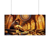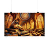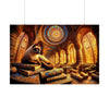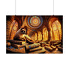 Le design complexe, avec sa tapisserie de parchemins et de sculptures anciennes, peut devenir une pièce maîtresse qui suscite la conversation et la curiosité. Que vous soyez un amoureux de l'histoire, un fan de félins ou un connaisseur des beaux-arts, cette affiche promet d'être un ajout significatif à votre collection, offrant un aperçu d'un monde où la sagesse et la beauté marchent patte dans patte.