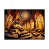 Cette affiche n'est pas seulement une décoration ; c'est une déclaration d'élégance, de mystère et une appréciation des histoires que le temps nous raconte à travers les paroles silencieuses de ceux qui veillent sur les plus grandes bibliothèques de l'histoire.