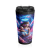 Embarquez pour un voyage à travers les étoiles avec chaque gorgée de la tasse de voyage en acier inoxydable « Celestial Innocence ». Ce compagnon de voyage de 15 onces est la fusion parfaite de l'art et de la fonctionnalité, mettant en vedette l'image fascinante d'un jeune enfant ressemblant à un ange sur une tapisserie de splendeur cosmique. Le regard de l'enfant, plein d'émerveillement, rencontre le vôtre pendant que vous dégustez votre boisson préférée, tandis que le halo complexe et les ailes vibrantes en forme de nébuleuse s'étendent sur la surface incurvée de la tasse, invitant à un sentiment de paix et de contemplation.