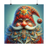 Chaque mèche de sa barbe luxueuse est imprégnée de l’or chatoyant de la lumière des étoiles et du bleu doux des cieux crépusculaires, en spirale en motifs qui font écho à la beauté fractale du givre. Son nez rouge rosé et ses gentils yeux bleus, bordés de spirales blanches de rêve, invitent à la chaleur et à la gaieté pendant la saison froide. Son chapeau orné, couronne de joie festive, se courbe avec une élégance qui capture l'essence des merveilles de la saison.