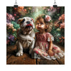 Plongez dans un royaume où l'innocence règne en maître avec notre affiche "Innocent Whispers". Cette œuvre d’art captivante fige un moment dans le temps, résumant le lien pur et tacite entre une jeune fille et son fidèle compagnon bouledogue. Sur fond de fleurs oniriques et de couleurs éthérées, cette image témoigne des moments sereins et joyeux qu’offre la vie.