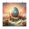 La figure centrale, un grand œuf orné de motifs sophistiqués, se présente comme le gardien des richesses de la saison. Il est entouré d'une tapisserie des plus belles fleurs du printemps - des plumes les plus douces du feuillage à la danse délicate des fleurs émergentes. Chaque détail est rendu avec une clarté qui invite le spectateur à se rapprocher et à se perdre dans la tranquillité luxuriante de cette scène idyllique. L'éclat argenté de la surface de l'œuf, miroir du soleil du matin, confère une qualité éthérée à l'affiche, ce qui en fait une pièce maîtresse parfaite pour n'importe quel espace.
