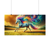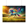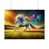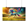 Fabriquée sur du papier photo lustré de qualité supérieure, l'affiche dégage un éclat subtil qui rehausse l'éclat de la crinière en forme de prisme de la licorne et la profondeur du champ doré. Les tourbillons dynamiques de couleurs attirent le regard, créant un spectre vivant qui danse avec la lumière tout au long de la journée. Mesurant 24 x 36 pouces, il est dimensionné pour être une pièce maîtresse fascinante qui ancre une pièce avec sa majesté et sa présence mythique.