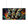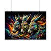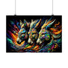 Entrez dans un monde où les rêves sont peints avec des traits vibrants et où l'imagination est sauvage avec l'affiche « Triad of Hypnotic Hee-Haws ». Ce délice visuel enchanteur met en scène trois êtres mystiques, gardiens de la créativité et de l'inspiration, chacun orné d'une crinière lumineuse qui tourbillonne avec l'essence même de l'invention. Astra, avec ses bleus et ses verts cosmiques, tisse les aspirations dans le tissu de la réalité. Les rouges, oranges et jaunes flamboyants de Cadenza allument les flammes de la joie et du rire, tandis que Mirage, drapé dans les pastels sereins de l'aube et du crépuscule, invite l'âme à une tranquillité réfléchie. Ensemble, ils forment une symphonie de lumière et de couleurs qui danse sur l’affiche, une célébration de la créativité illimitée qui sommeille en chacun de nous. Cette affiche n'est pas seulement une œuvre d'art ; c'est une invitation à rêver, à imaginer et à laisser votre esprit s'envoler sur les ailes du voyage vibrant des Hypnotic Hee-Haws. Parfait pour les rêveurs, les créateurs et tous ceux qui recherchent une étincelle d’inspiration pour égayer leur espace et leur vie.