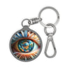 Le porte-clés « Visions of the Void » est un chef-d'œuvre miniature, une œuvre d'art portable qui apporte la grandeur du cosmos dans la paume de votre main. En son cœur se trouve un œil incroyablement détaillé, si réaliste qu'il semble presque sensible, son iris est un microcosme de merveilles célestes tourbillonnantes. Autour de l'œil se trouvent de délicats motifs ressemblant à des plumes qui ondulent vers l'extérieur, chaque brin étant gravé avec une précision exquise, créant une illusion de douceur et de profondeur. Ces plumes forment un halo de teintes terreuses, entrecoupées de filaments d'or et d'azur, rappelant les vrilles enflammées d'une nébuleuse en formation d'étoiles. L'ancrage de l'œil est constitué d'une série complexe de cercles concentriques et de motifs géométriques, évoquant les structures usées par le temps des instruments astronomiques anciens. Ce porte-clés n'est pas simplement un accessoire, mais un talisman, un rappel des vastes mystères de l'univers que l'on peut emporter au cours de son voyage, où qu'il mène.