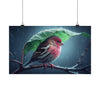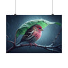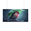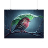 Jasper's crimson feathers glowed against the muted colors of the rain-soaked garden. The vibrancy of his plumage was intensified by the contrast, and every contour of his delicate features was highlighted with stunning clarity. It was as if he had become a living, breathing piece of art amidst the storm.