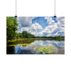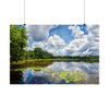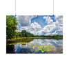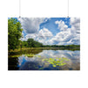 This captivating photo showcases a serene lake in Minnetonka, Minnesota, against a backdrop of brilliant blue skies. The crystal-clear blue water perfectly mirrors the picturesque landscape, enhancing the overall tranquility of the scene. Puffy clouds drift across the sky, casting playful shadows over the shimmering lake. The surrounding shores are adorned with vibrant spring green vegetation, painting a lush and refreshing atmosphere. Lily pads gently float atop the water's surface, adding a touch of enchantment to the pristine setting. This image captures the beauty and serenity of nature in Minnetonka, Minnesota, inviting viewers to immerse themselves in the captivating allure of this idyllic location.
