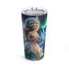 Featuring the mesmerizing scene of a magical Christmas encounter, our tumbler showcases a vibrant print wrapped around its exterior. The radiant winter fairy, adorned in a gown that sparkles with the frosty magic of the season, stands alongside the iconic and jolly Santa Claus, against a backdrop of majestic mountains under the spell of the aurora borealis.