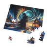Step into a world where fantasy and festivity collide with 'A Festive Fury: The Winter Wizard's Realm' jigsaw puzzle. This captivating 1000-piece puzzle features a striking scene of a mystical wizard in a dramatic cloak, summoning a swirling vortex amidst a serene snow-covered village. The intricate artwork invites you to piece together a magical winter night, complete with twinkling lights on Christmas trees, cozy snow-laden cottages, and a mesmerizing sky that dances with celestial patterns. As each piece falls into place, a story of enchantment and wonder unfolds, promising not only a challenging and fulfilling assembly experience but also a spectacular seasonal display that captures the imagination and spirit of the holidays. This puzzle is perfect for those who delight in the extraordinary and cherish the warm essence of Christmas
