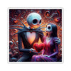 Embrace the enchanting universe of 'Starry Night Lovers,' a premium sticker that transports you to a world where love transcends the ordinary. This exquisite piece showcases the ethereal bond between two iconic figures, portrayed in a cosmic dance of vibrant colors and intricate patterns. The male figure, with his distinctively elongated, skeletal form and a heartwarming smile, extends a heart, symbolizing undying love and connection. Beside him, the female figure, radiant in a galaxy-infused dress, mirrors his affection with a tender gaze, completing this surreal, romantic moment. Set against a backdrop that swirls with the mysteries of the universe, this sticker is more than a decoration; it's a portal to a fantastical story, etched in every intricate detail and vivid hue. Perfect for notebooks, laptops, and anywhere you wish to add a touch of otherworldly romance and artistic flair.