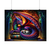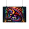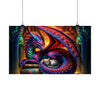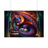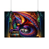 Immerse yourself in a world where myth meets comfort, and legendary guardianship intertwines with serene companionship. "A Tale of Fire and Whiskers" is not just a poster; it's a gateway to an enchanting narrative, depicted through the vivid, swirling colors of Azuron the dragon, and the tranquil grace of Seraphina, the celestial kitten. This masterpiece brings a slice of the mystical into your home, transforming any room into a haven of imagination and tranquility.