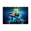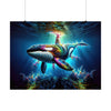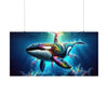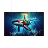 "Aurora of the Abyss" is an enchanting underwater scene that captures the majestic beauty of oceanic life fused with a fantastical twist. At the center is a colossal whale, its body adorned with intricate patterns and a kaleidoscope of vivid colors that resemble a tapestry of living art. The whale gracefully navigates through the deep blue sea, surrounded by an otherworldly coral reef that seems to bloom with neon life, emitting a soft, ethereal glow. Sunlight pierces the water's surface, casting beams that dance over the whale's ornate body and illuminate the ocean floor. This surreal habitat, alive with vibrant hues and mesmerizing forms, invites the onlooker to dive into a dreamlike voyage into the depths of the most mysterious and magical parts of our planet.