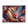 Each feather, a flourish of nature's meticulous artistry, is a testament to the intersection of order and chaos. The azaleas, rendered in delicate pinks and soft hues, provide a gentle contrast to the bird’s fiery crown and the meticulous geometry of its plumage. This poster promises to be more than just wall decor; it is a conversation starter, a center of gravity in any room that pulls the eye and captures the heart.