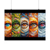 As you glance at the poster, your eyes will travel from the serene blues and whites of a winter's frost, captured in the tranquil eye of the Ice Observer, to the vibrant greens and floral bursts of the Spring Observer, symbolizing rebirth and new beginnings. Transition with the warm, fiery hues of summer, where the Summer Observer's passionate gaze embodies the fullness of life, before settling into the rich, golden tones of autumn, under the reflective eye of the Autumn Observer.