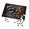 Immerse yourself in the interstellar beauty of the "Cosmic Cascade of Plumes" jigsaw puzzle. This 1000-piece puzzle invites you to piece together the vibrant majesty of a celestial peacock whose feathers are a mesmerizing blend of swirling nebulas, twinkling stars, and radiant cosmic colors. Each puzzle piece is a fragment of the universe, with intricate designs that mimic the complex structures of galaxies and the brilliant hues of astronomical phenomena.