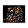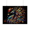 Printed on premium quality paper, this poster brings to life the vibrant hues and intricate patterns of the celestial peacock's feathers, each one a masterpiece containing the swirling essence of galaxies and the brilliance of star-forming nebulas. The image is a celebration of cosmic beauty, rendered in rich, fade-resistant inks that ensure the longevity of its awe-inspiring colors and details.