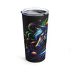 This 20oz stainless steel tumbler is an exquisite blend of practicality and ethereal beauty, designed for those who carry a touch of the cosmos with them. Adorned with the mesmerizing "Cosmic Cascade" image, the tumbler features a vividly colored, otherworldly horse's head, its mane flowing like a river of neon light against the canvas of space. Each curve and swirl of the mane is highlighted by an array of neon colors that stand out strikingly against the sleek, silver backdrop of the tumbler. The horse seems to gallop through a universe filled with shimmering stars and celestial spheres, creating a visual spectacle that's both captivating and inspiring. This durable tumbler is perfect for keeping beverages at the desired temperature, whether hot or cold, while providing a touch of cosmic elegance to your daily routine.