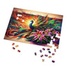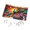 Embark on a journey through a kaleidoscope of colors with the "Cosmic Feather Fusion" jigsaw puzzle. This intricate and vibrant puzzle features a majestic peacock, its feathers unfurling in a spectacular array of colors that mimic the swirling patterns of the cosmos. The detailed artwork invites you to piece together each strand of the peacock's luminous feathers, alongside the stunning stardust lilies that bloom with an otherworldly glow.