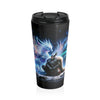 Unveil the majesty of the night skies with our 'Celestial Sentinel' Stainless Steel Travel Mug, a 15 oz tribute to the eternal guardians of myth and cosmos. This travel companion is more than a container; it's a portal to an epic saga. Wrapped around its sleek, stainless steel body is the stunning depiction of Astrid, the storied Cosmic Guardian, in a silent pact of protection with the luminous Astral Phoenix, whose feathers ripple with the fabric of the universe.