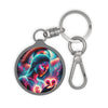 The "Cosmic Heartbreak" keyring tag is a miniature artistic representation of the original, vibrant artwork, condensed into a small, portable form. This tag, designed to accompany keys, brings a touch of cosmic emotion to everyday life. It features the image of a woman with a luminous, star-infused complexion that captures the essence of a starry night sky. Her expression is one of poignant sorrow, with a tear that seems to carry the weight of galaxies, hinting at the profound depth of her emotions. In her delicate hands, she cradles the two glowing halves of a broken heart, emphasizing the theme of loss and love. The vibrant colors of the heart contrast with her serene, glowing blue visage. The tag is crafted to showcase the intricate details of the cosmic patterns on her skin and the ethereal light that seems to emanate from within her. This keyring tag is not only a functional accessory but also a small token of art, offering a daily reminder of the beauty and complexity of human emotions against the tapestry of the cosmos.