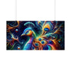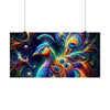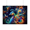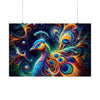 Step into the enigma of the universe with the "Cosmos Quill Symphony" poster. This stunning visual feast captures the essence of creation, featuring the majestic Cosmic Peacock whose vibrant plumage bleeds into the fabric of the cosmos. Each feather, a pulsating spectrum of colors, embodies the raw energy of countless stars and the profound depth of black holes. The peacock’s gaze, both mysterious and profound, invites you to ponder the infinite stories written in the celestial realms.
