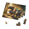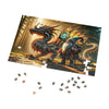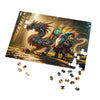 Piece together the magic of companionship and adventure with this intricately designed jigsaw puzzle. Each piece is a gateway into the mystical world where Alder the gnome and his majestic dragon Eirwyn reside. As you fit each piece, the story of their bond and the beauty of the enchanted forest come to life in your hands. The complexity of the dragon's ornate scales will be a rewarding challenge for puzzle enthusiasts, offering hours of engagement as the image slowly reveals itself. With a striking blend of vivid colors and whimsical imagery, completing this puzzle is like unveiling a masterpiece, one piece at a time. It's more than a pastime; it's an exploration of an otherworldly narrative, perfect for those cozy evenings filled with imagination and wonder.