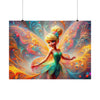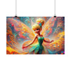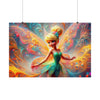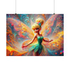 Printed on superior-grade, satin-finish paper, the poster brings to life the vivid tapestry of the fairy's dance. The swirls and twirls of her sun-kissed wings are depicted with a rich color palette that radiates off the wall, reminiscent of the most vibrant sunrise. The high-quality print ensures that every delicate gradient and joyful sparkle of the fairy's movement is captured in stunning detail.