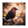 This photo-realistic image portrays a Brown-Headed Cowbird perched on a tree branch in the middle of a serene forest at dusk. The tight composition of the image draws the viewer's attention to the Cowbird, while the highly detailed rendering and sharp details showcase the intricate beauty of the bird's feathers. The warm and vibrant colors of the Cowbird's plumage blend seamlessly with the soft creamy bokeh in the background, creating a sense of isolation and introspection that invites the viewer into the Cowbird's contemplative world.