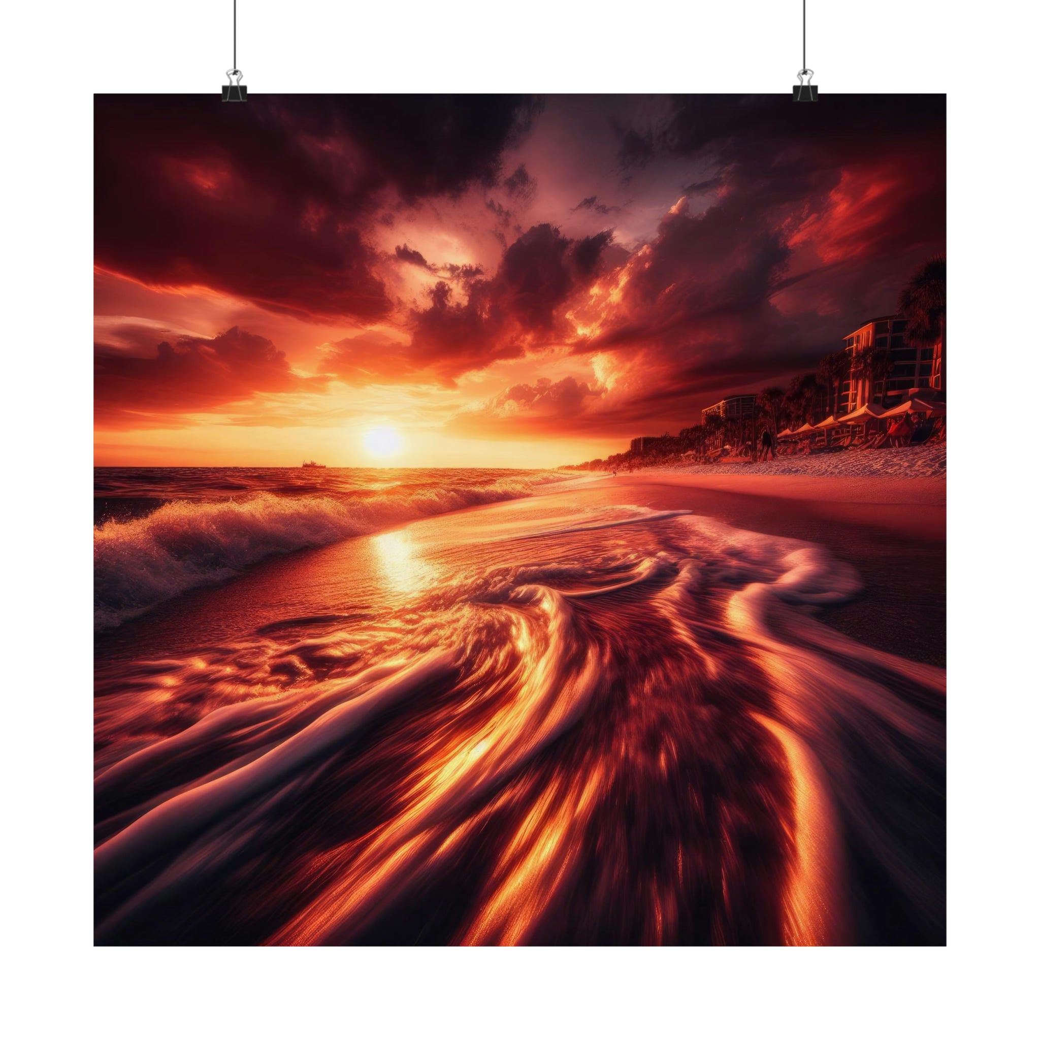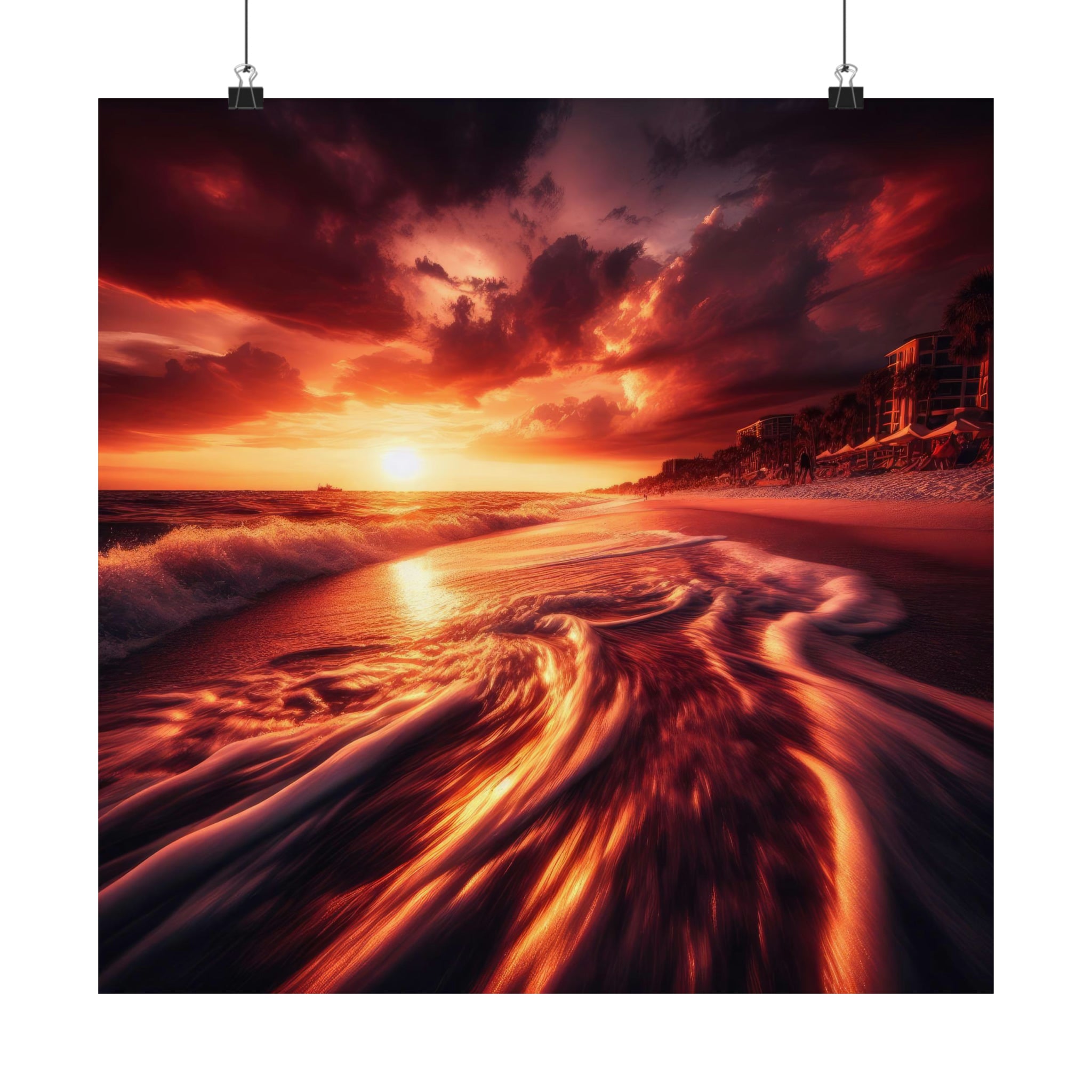 Every detail came to life with a crispness that bordered on photo-realistic perfection. The rich color tones of the sky melted seamlessly together, creating a breathtaking canvas of oranges, pinks, and purples. The mood of the evening was one of quiet introspection as if the world itself held its breath in anticipation of the spectacle unfolding before it.