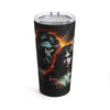 Crafted from durable stainless steel, this tumbler boasts double-wall insulation to keep your drinks at the perfect temperature, whether hot or cold, while you embark on your daily odysseys. The image of Hades, with his fiery eyes and majestic aura of darkness, wraps around one side, his presence symbolizing strength and enduring legacy. On the opposing side, Persephone, with her blossoming garland and eyes filled with the depth of nature’s secrets, offers a touch of serenity and rebirth.