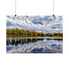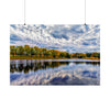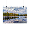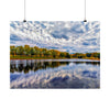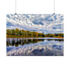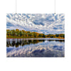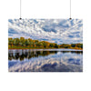 In this captivating photo, drama unfolds in the autumn skies above Broemmelsiek Park Lake. The atmosphere is filled with a sense of anticipation as nature showcases its vibrant hues. Blankets of puffy clouds paint the sky, creating a stunning contrast against the deep blue backdrop. The surrounding trees burst with an array of rich, fiery colors, adding to the overall spectacle. As the clouds traverse the heavens, their reflections dance upon the tranquil surface of the lake, lending an ethereal quality to the scene. This image captures the captivating beauty of autumn and the ever-changing expressions of nature, inviting viewers to lose themselves in the enchanting display above Broemmelsiek Park Lake.