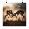 As I stood there, camera in hand, I couldn't help but be captivated by the intense spectacle unfolding before me. The sight of two Gerenuk locked in a fierce battle, amidst the backdrop of the grass and dirt, with swirling dust in the air, was a moment that demanded to be immortalized. With each click of the shutter, I painstakingly captured the crisp details, ensuring a photo-realistic representation of the scene. The rich color tones, from the vibrant greens of the grass to the earthy hues of the dirt, added depth and dimension to the image. The insanely detailed depiction of the Gerenuk's fur and antlers showcased the raw power and energy being exerted in their struggle. And as a creamy bokeh softly blurred the surroundings, a sense of intimacy settled over the photograph, drawing viewers into the heart of this gripping wildlife encounter.