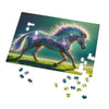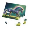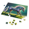 "Effulgent Mirage" Jigsaw Puzzle - Dive into a world of fantasy and color with this stunning 1000-piece puzzle. Each piece reveals a part of the enchanting zebra, whose stripes twist and turn into mesmerizing patterns that pulse with a neon luminescence. The zebra's mane and tail are a spectrum of radiant hues, flowing like liquid light against the contrasting serenity of a green, flower-speckled meadow. As you fit each piece together, the full majesty of the "Effulgent Mirage" comes to life, challenging the mind and delighting the senses with its otherworldly beauty. Perfect for puzzle enthusiasts and lovers of the surreal, this puzzle promises hours of immersive fun and a spectacular artwork upon completion.