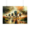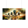 Imagine this: A poster of such exquisite detail and color that it transforms your space into a peaceful sanctuary. "Elephants in Morning Mist" is not just a print; it's a window to an ethereal world. As the first rays of dawn cast a golden hue over the horizon, a herd of majestic elephants emerges from the mist-enshrouded banks of the Enchanted River.
