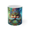 This 11oz ceramic mug would be adorned with the magical image of "Enchanted Laughter," a whimsical and detailed depiction of a mythical gnome. The gnome's face, full of mirth and twinkling eyes, would wrap around the mug, inviting you to share in his joy with every sip. His beard and hair, a riot of swirling patterns and vivid colors, would weave a tapestry of ornate designs in brilliant hues of blue, green, and gold, set against a soft, ethereal background that suggests a mystical source of light.