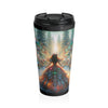 "Embrace the chill of winter and the warmth of holiday magic with our 'Enchantment of the Winter Solstice Fairy' 15 oz Stainless Steel Travel Mug. This beautifully crafted mug is adorned with an exquisite image of a fairy whose wings echo the splendor of a peacock, studded with sparkling jewels against a backdrop of a snowy, festive forest. The Christmas trees around her glow with vibrant lights, resembling a constellation of stars against the twilight forest. The double-walled construction of the mug ensures your beverages stay hot or cold while you're on the move, making it an ideal companion for your daily commutes or winter adventures. Durable, stylish, and enchanting, this travel mug is a perfect way to carry the magic of the winter season with you, and a delightful gift for anyone who delights in the fairy-tale essence of the holidays."