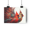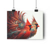 In a whimsical forest, a male and female cardinal embarked on a journey of love, their semi-abstract forms shimmering with vibrant mandala-patterned fractal wings. Their connection was not limited to their physical beauty; it was a deep and eternal bond that transcended the ordinary.