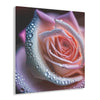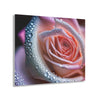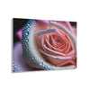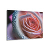Emblazoned by jewels of dew, the eye of the rose is revealed