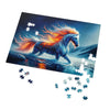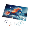 The "Flameheart" jigsaw puzzle is an invitation to piece together the power and mystery of a legendary creature. Each puzzle piece is a fragment of the epic tale, bringing into focus the vibrant fire that ripples through Flameheart's mane, and the stark, icy world he nobly traverses.