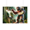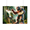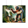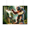 "Embrace the serene beauty of the 'Forest Whisperer' — a captivating poster that transports you to an enchanting woodland realm. Witness a majestic, mystical creature, its fur adorned with a tapestry of rich, vibrant flowers and lush foliage, as it stands as a guardian of nature's secrets. With a delicate brush in hand, this gentle giant is caught in a moment of creation, skillfully bringing to life the tranquil scenery of a forest mirrored by a crystal-clear stream. The artwork, a harmonious blend of the fantastic and the real, invites you to lose yourself in the details of this peaceful sanctuary. Every stroke on the canvas and every leaf in the background is a testament to the silent symphony of the woods, captured forever by the whisperer's touch. This poster isn't just a piece of art; it's a window to an ethereal world, reminding us of the intricate connection between all living things and the artistry of the wild."