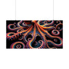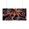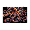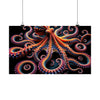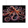 This captivating poster features a mesmerizing image that blurs the lines between the aquatic and the abstract. At its heart is a majestic, fractal-inspired octopus, sprawling across the canvas with an array of infinitely complex tentacles. Each limb twists into spirals and curls, adorned with what appear to be vibrant, glowing suction cups that draw the eye ever deeper into the poster's depths.
